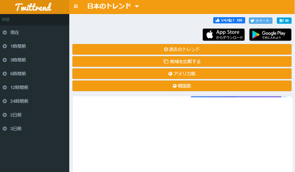 Twitterendは、各地域で話題のハッシュタグをランキング形式で確認できるサイトです。世界各地のトレンドを知ることができるほか、日本国内全体や、東京・大阪・札幌・仙台など細かいエリアごとの人気ハッシュタグを確認することができます。
